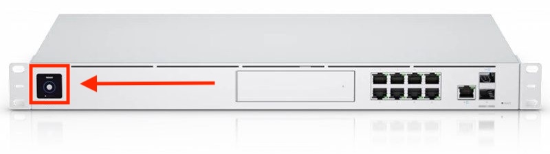 Your UniFi Dream Machine has a small touchscreen display on the front of the device. This is where you’ll navigate to restart the router.